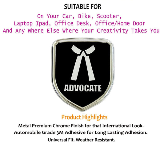 3D Metal Chrome Sticker Emblem Badge Logo | Durable & Stylish Automotive Decoration | for Cars & Bikes (Advocate Black)